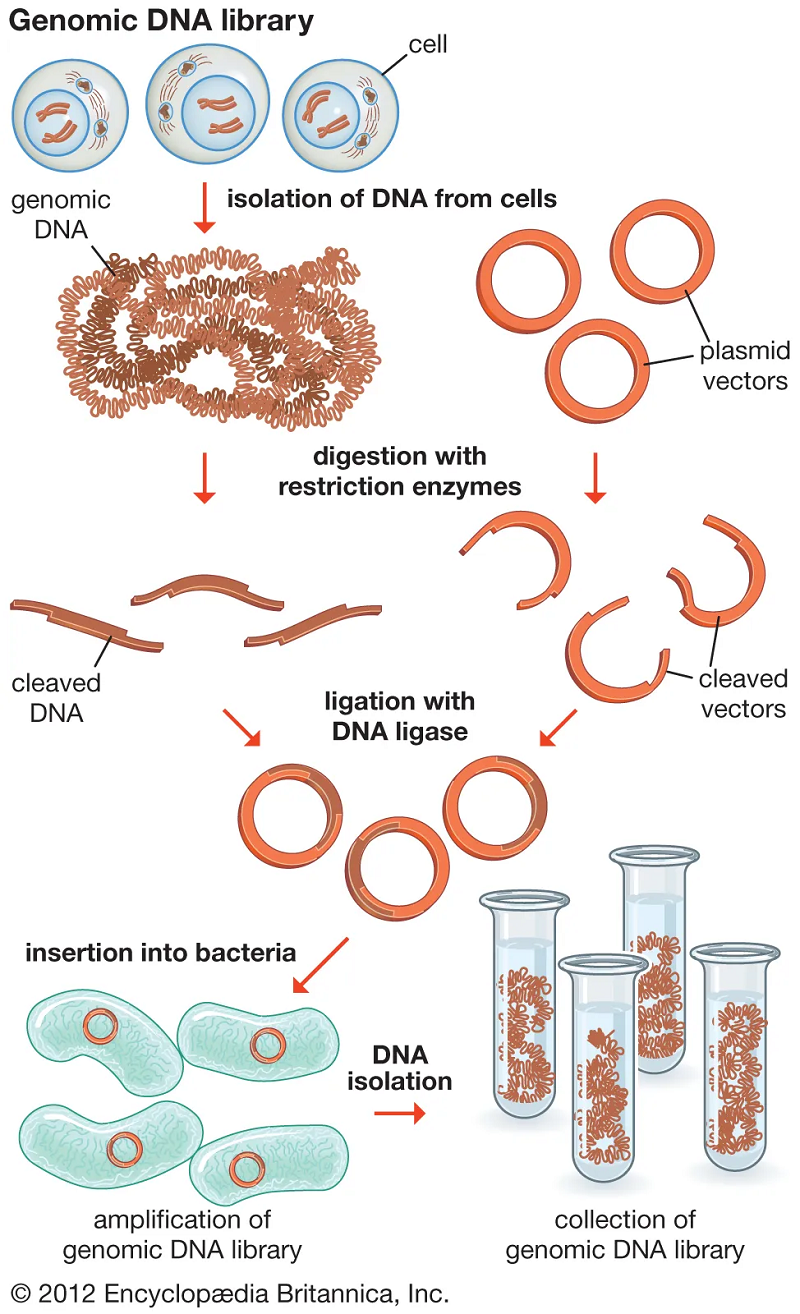 Gen mong muốn được đưa vào plasmid bằng enzyme ligase để kết nối vị trí DNA.