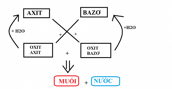 Có một số oxit bazơ phản ứng với oxit axit tạo thành muối. Thông thường mực nước sẽ phản ứng với oxit axit. Phương trình phản ứng tổng quát được biểu diễn như sau: