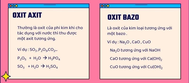 Oxit thường được chia thành hai loại: oxit axit và oxit bazơ.