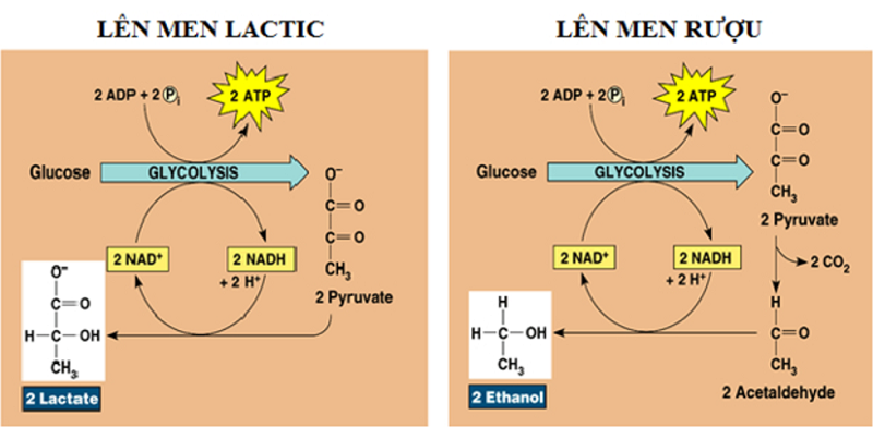 Lên men ethanol: Quá trình này sử dụng nấm men (Saccharomyces cerevisiae) để chuyển hóa đường thành ethanol và CO2. Đây là phương pháp chủ yếu trong sản xuất rượu, bia, ethanol công nghiệp.