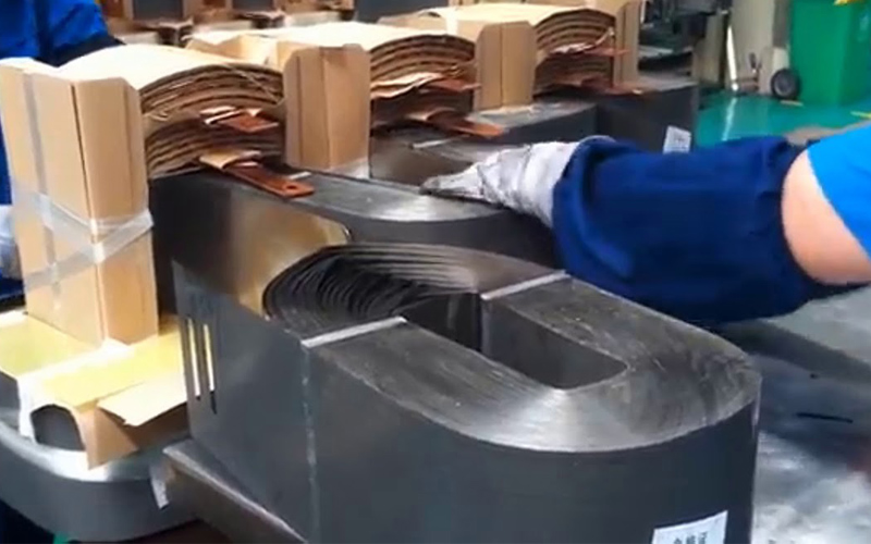 Mạch từ gồm các tấm cuộn được lắp ráp sẵn một pha, được ủ ở nhiệt độ khoảng 3500oC. Khi mạch từ đã được lắp đặt, nó sẽ cứng và hoạt động như một giá đỡ cơ học cho tất cả các phần tử máy biến áp nằm trên đó.