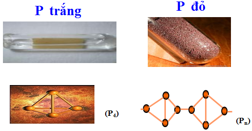 – Cả phốt pho đỏ và phốt pho trắng đều chứa mạng lưới các nhóm tứ diện gồm bốn nguyên tử phốt pho. Trong khi tứ diện phốt pho trắng tạo thành các nhóm tứ diện riêng biệt thì tứ diện phốt pho đỏ được liên kết với nhau để tạo thành chuỗi.