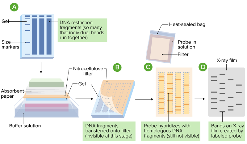 Làm mờ: Các đoạn DNA sau khi cắt sẽ được tách ra và chuyển lên màng nitrocellulose hoặc PVDF thông qua quá trình gọi là “làm mờ”. Điều này giúp cố định các đoạn DNA trên màng để dễ dàng phân tích sau này.